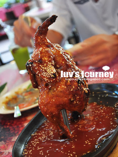这一次吃到最特别的就是火凤凰了,其实就是乳鸽吧!考好了后被竖立在铁板上,呈上饭桌的时候再用火烤一烤,就可以切来吃了。美中不足的是酱汁里有火酒味,所以打了折扣。其他的食物都有90%,值得一试!